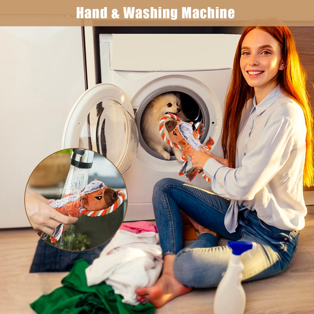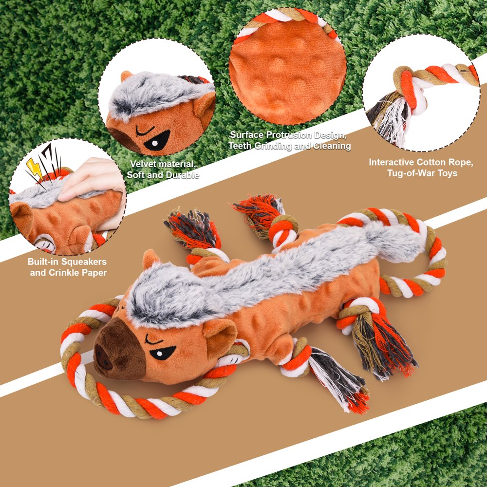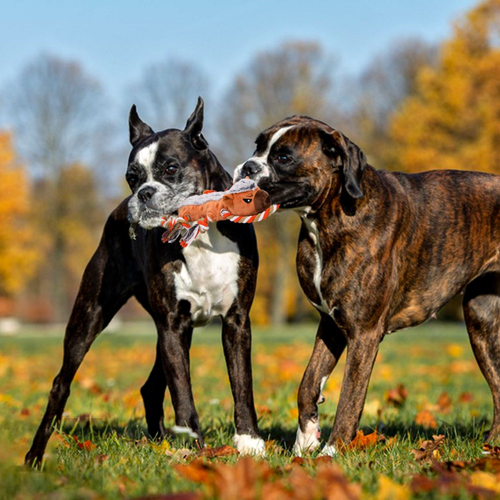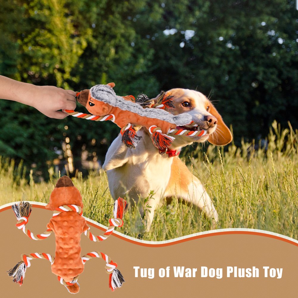- Rope-designed Dog Toy: This cute plush dog toy comes with a pullable rope, making it an excellent interactive toy for tug-of-war games. It’s the perfect toy for intelligence and interactive training, strengthening the bond with your pet and bringing more fun to you and your dog.It captures pets’ attention, keeping them busy and curious, stimulating their intelligence, and providing mental stimulation.