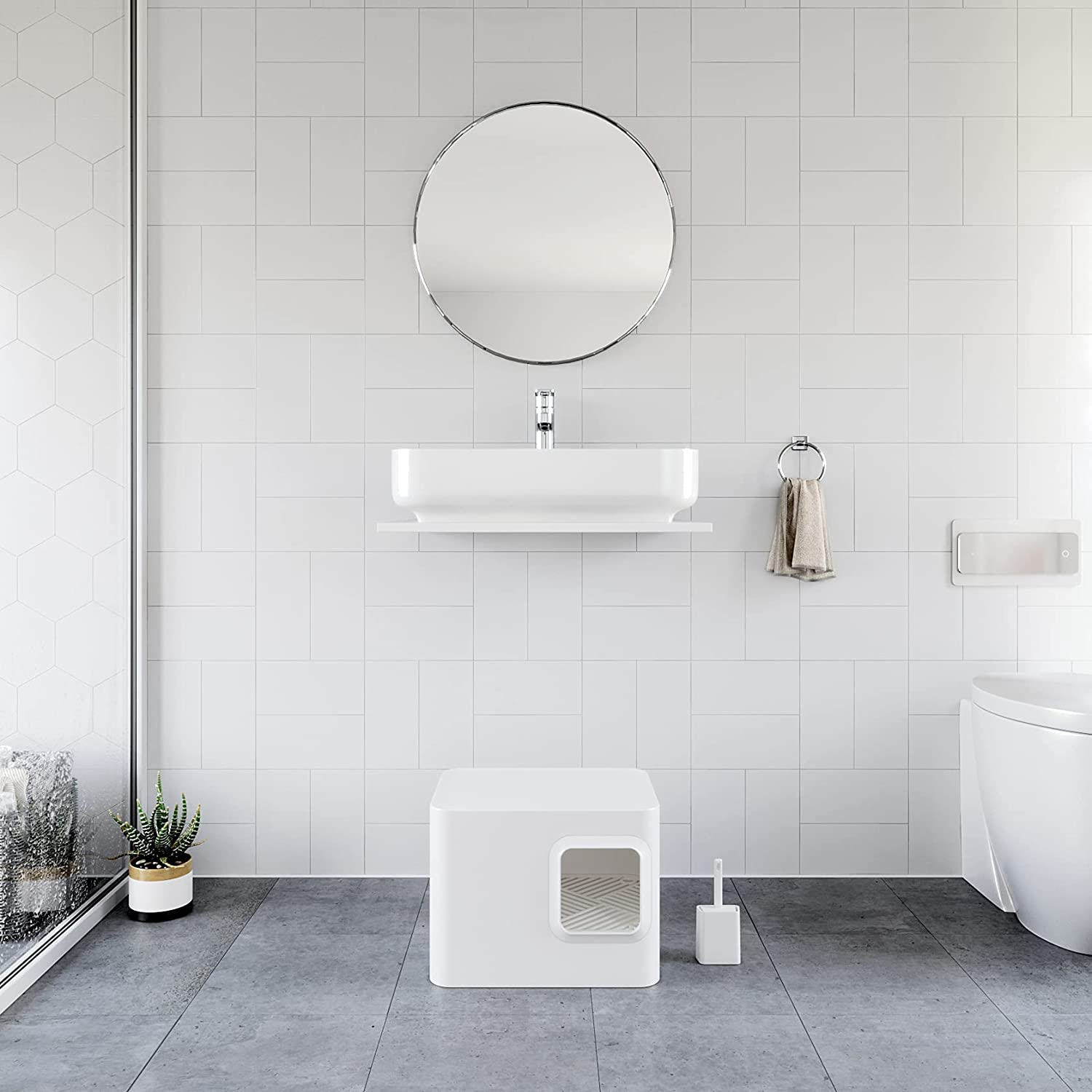Meowy Studio Loo Modern Cat Litter Box – All in One Cover Litter Filter Plate Scoop and Holder, Aspen White