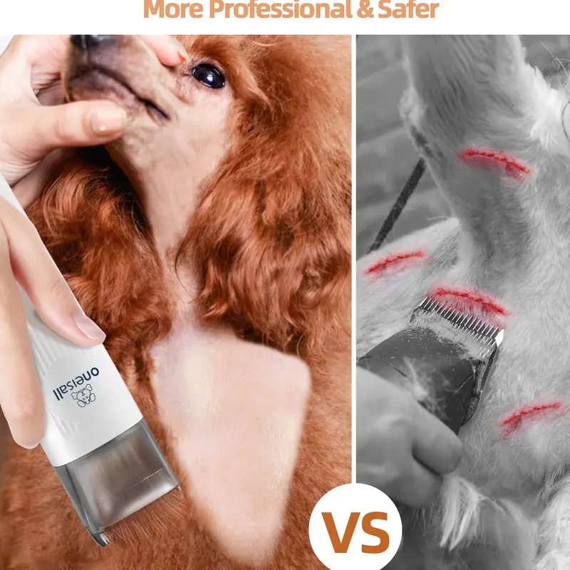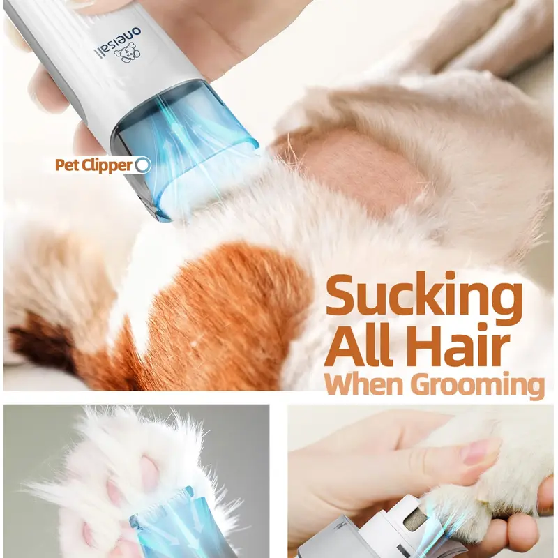 - 【7 in 1 Pro Pet Grooming Kit,Keep the House Tidy】oneisall pet grooming kit with vacuum make home grooming easy.The grooming brush and the deshedding tool gently remove loose hair and making pet hair shiny and smooth while eliminating tangles. Electric clipper, dog paw trimmer and dog nail grinder provides excellent cutting. Give your pet a best grooming experience. Nozzle head and Cleaning brush can be used for collecting pet hair falling on the carpet, sofa and floor.