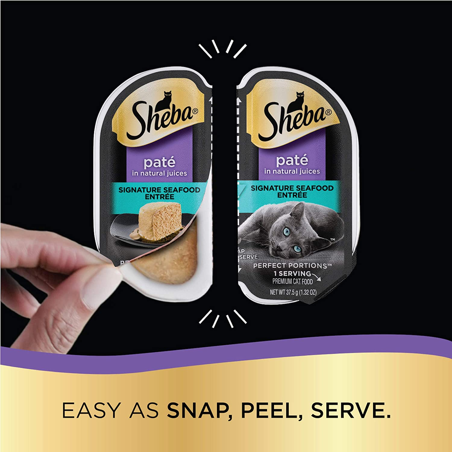 • Snap, Peel, & Serve: SHEBA PERFECT PORTIONS have two convenient servings in portioned trays so you can feed your cat exactly what they need
